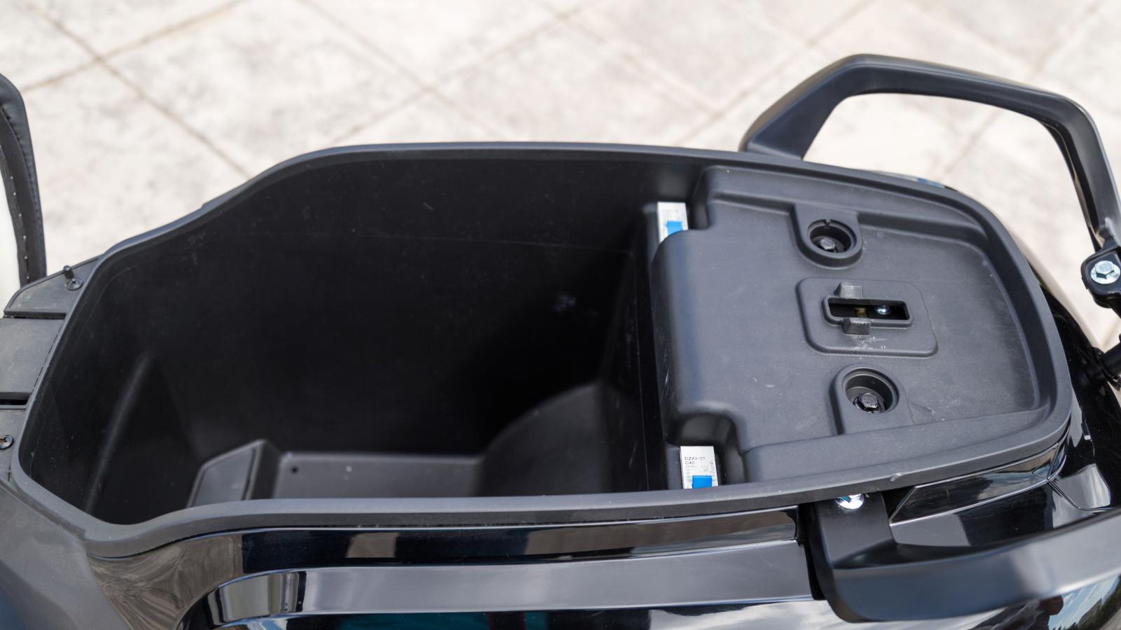 Μπαταρίες στο πάτωμα και αποθηκευτικός χώρος κάτω από τη σέλα.