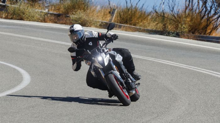 Προτιμήσαμε την χρήση του B Mode, στο οποίο η απόκριση του γκαζιού είναι λίγο πιο ήπια από ότι στο A, με την ελαστικότητα και την απόδοση ροπής του κινητήρα να σου επιτρέπουν να ξεχάσεις την 1η σχέση ακόμα και σε πυκνή κίνηση αν το επιθυμείς. Η λειτουργία του αμφίδρομου Quickshifter είναι υποδειγματική, ενώ σκορτσαρίσματα και ενοχλητικοί κραδασμοί είναι απλώς άφαντοι σε όλο το φάσμα των στροφών του εξαιρετικού αυτού κινητήρα.