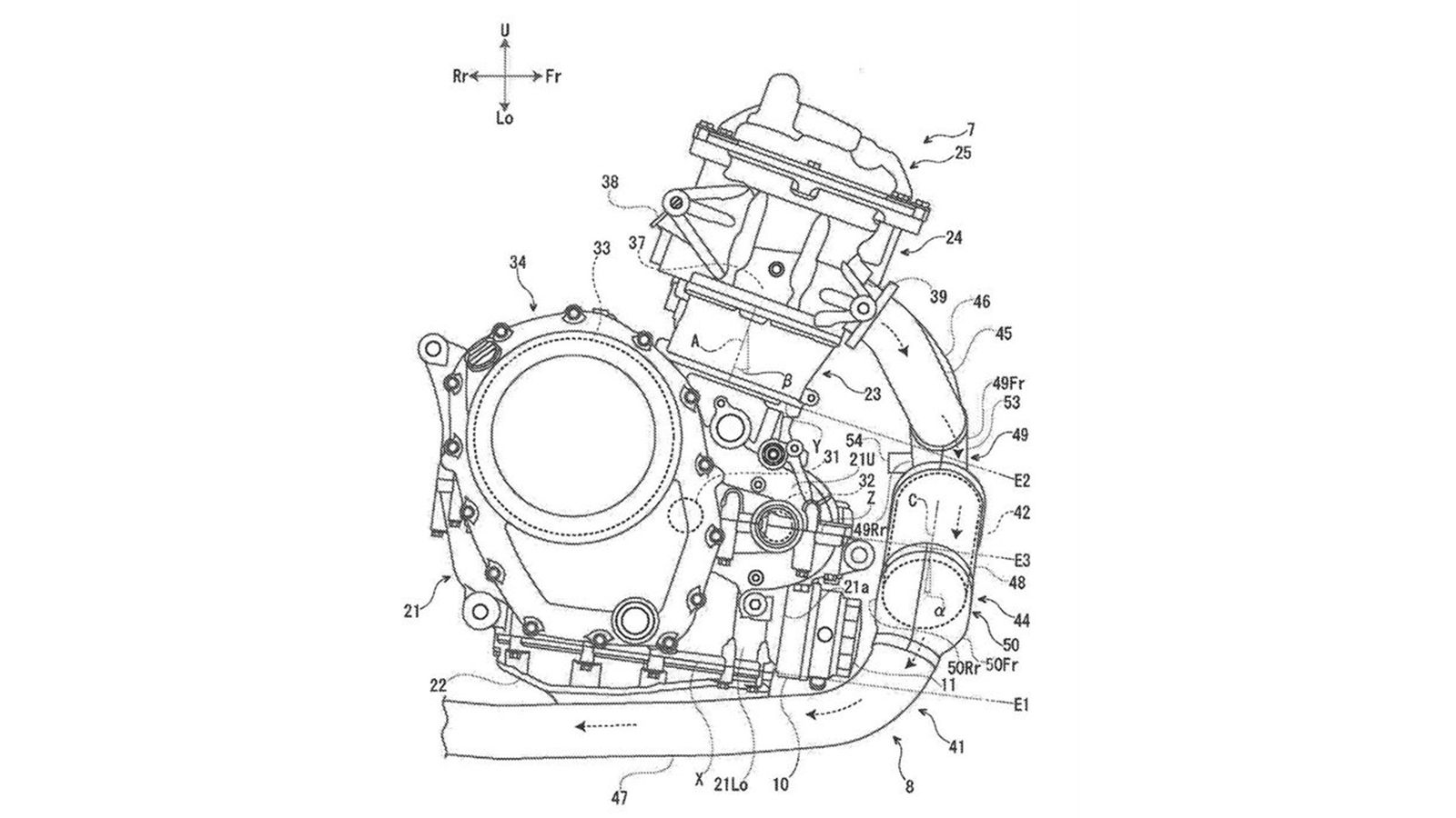 Δύο από τα σχέδια των νέων πατεντών της Suzuki. Η έλλειψη turbo από τον κινητήρα, είναι προφανής.