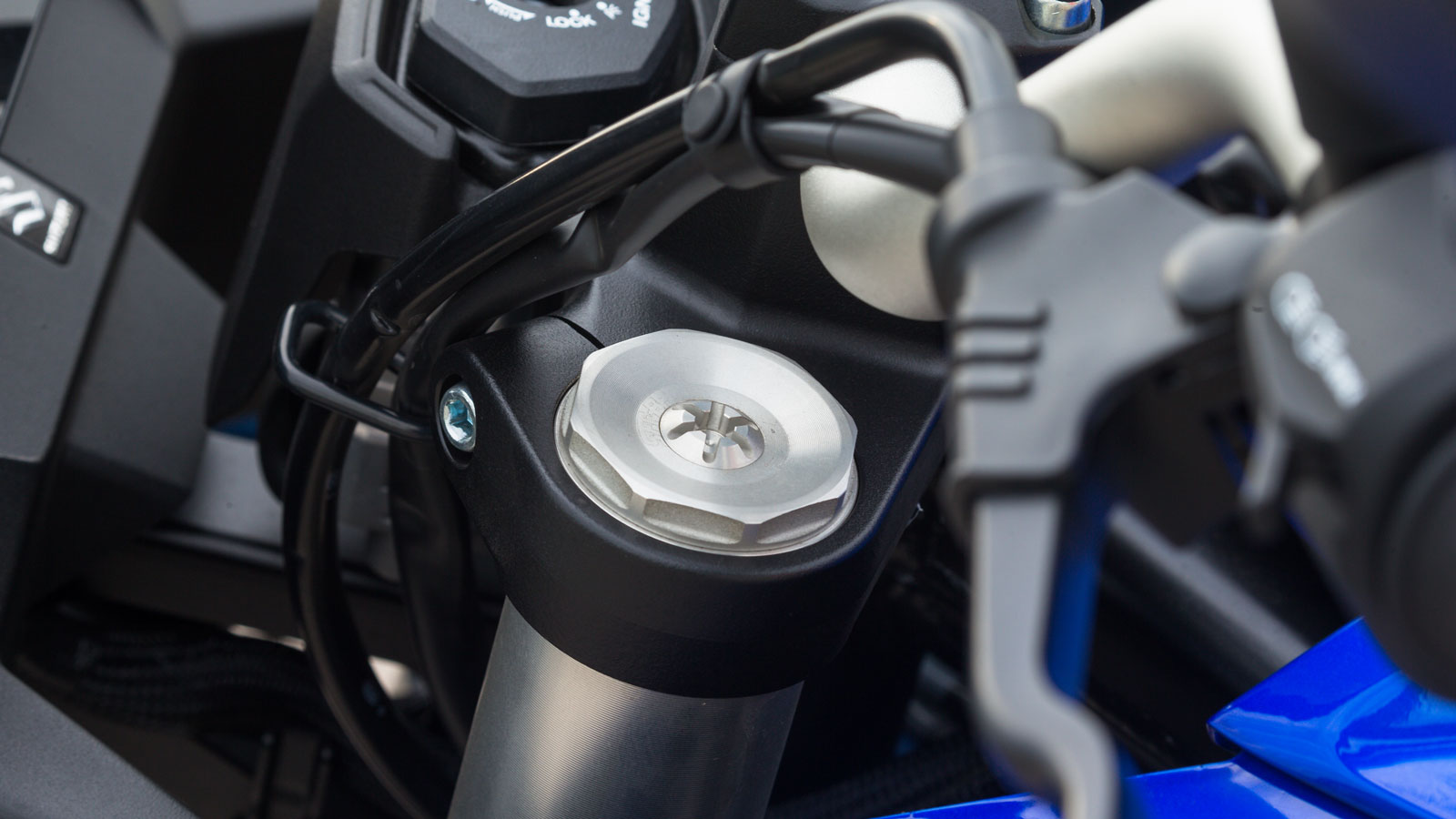 Η Suzuki έχει κάνει ορισμένες αλλαγές ώστε να καταστήσει το V-Strom καταλληλότερο για άσφαλτο. Οι ακτινωτές ζάντες 21- 17 ιντσών με τα σαμπρελωτά ελαστικά Dunlop Trailmax Mixtour, αντικαταστάθηκαν με αλουμινένιους τροχούς 19 - 17 ιντσών και tubeless ελαστικά Dunlop D614. Ταυτόχρονα μειώθηκε και η διαδρομή της Showa ανάρτησης από τα 220 στα 150 χιλιοστά, τόσο στο εμπρός Split Function Fork – Big Piston (SSFF-BP) πιρούνι όσο και στο monoschock πίσω αμορτισέρ. Το πιρούνι έχει χάσει την πλήρη προσαρμοστικότητά του, αλλά συνεχίζει να έχει ρυθμιζόμενη προφόρτιση, ενώ το πίσω αμορτισέρ διαθέτει περιστροφικό ρυθμιστή για την προφόρτιση ελατηρίου και απόσβεση επαναφοράς. Αλλαγμένη είναι και η γεωμετρία της μοτοσυκλέτας, καθώς έχει μικρότερο μεταξόνιο 1.515 χιλιοστά (1.570 στη DE) μικρότερη γωνία κάστερ 26 μοιρών (28 στη DE) και μεγαλύτερο ίχνος 124 χιλιοστά (114 στη DE). Το φρενάρισμα αναλαμβάνει η Nissin με τετραπίστονες ακτινικές δαγκάνες και δύο δίσκους 310χιλ στο εμπρός μέρος και έναν δίσκο 260χιλ με μονοπίστονη δαγκάνα πίσω, ενώ το ABS εξασφαλίζει το ασφαλές φρενάρισμα σε όλες τις συνθήκες.