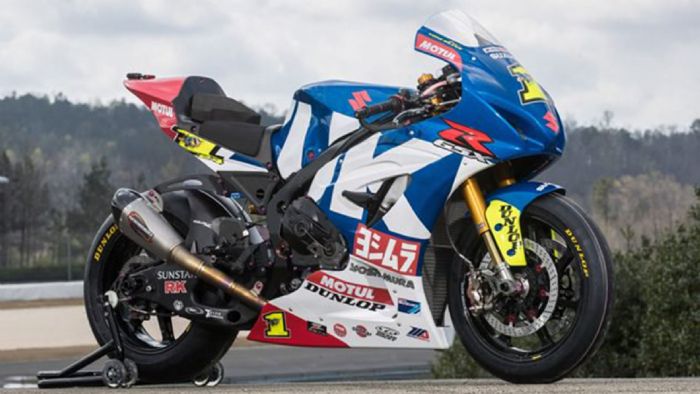 Τα ειδικά χρώματα της ομάδας Yoshimura Suzuki, προς τιμήν της 40ης επετείου συνεργασίας.