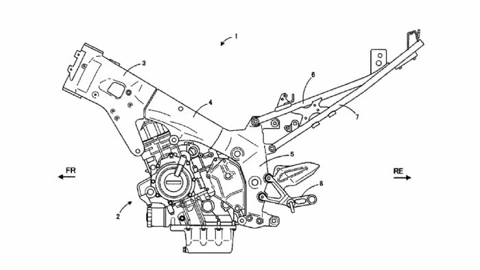 Η μοτοσυκλέτα που ετοιμάζεται σχεδιάζεται κατά κόρον γύρω από το ελάχιστο δυνατό βάρος, προκειμένου να είναι ακόμα γρηγορότερη! Αν παρατηρήσουμε λοιπόν τα σχέδια, θα δούμε ότι η εταιρεία ξεχωρίζει τρία τμήματα του πλαισίου, τα οποία έχει μαρκάρει στο σχέδιο με τους αριθμούς 3, 4 και 5.