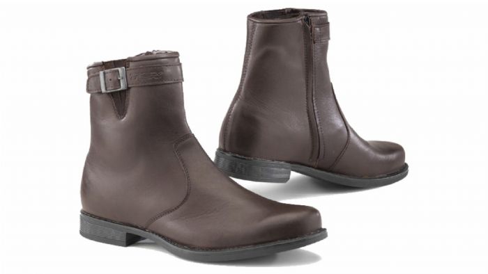 Έχουν ενίσχυση στον αστράγαλο, τα δάχτυλα και την φτέρνα. Διαθέτουν κρυφό φερµουάρ, φερµουάρ στο πλάι για ευκολότερο κλείσιµο και ρυθµιζόµενο δερµάτινο ιµάντα. Ο πάτος τους είναι ανατοµικός και αφαιρούµενος µε τεχνολογία anti-shock. Έχουν κλασική σόλα υψηλής αντοχής. Διαθέτουν πιστοποίηση CE. Διαθέσιµα στο κατάστηµα Motorparts, www.motorparts.com.gr,