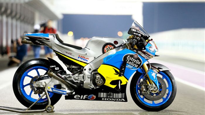 Ένα σχετικά ανοιχτό μπλε πάντα ελκύει τα βλέμματα, ενώ όταν συνδυάζεται με κάποια απόχρωση κίτρινου… γίνεται χάρμα! Η μοτοσικλέτα της Estrella Galicia βασίζεται πάνω στις αποχρώσεις του μπλε και για άλλη μια φορά, του μεταλλικού ασημί, ενώ δημιουργεί μια μεγάλη αντίθεση με τον φωσφοριζέ κίτρινο πάνθηρα που υπογραμμίζει την επιθετικότητα μιας μοτοσικλέτας Moto GP. Οι μπλε ζάντες και η μαύρη καρίνα συμπληρώνουν την αναμφίβολα εντυπωσιακή εμφάνιση.