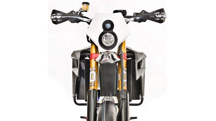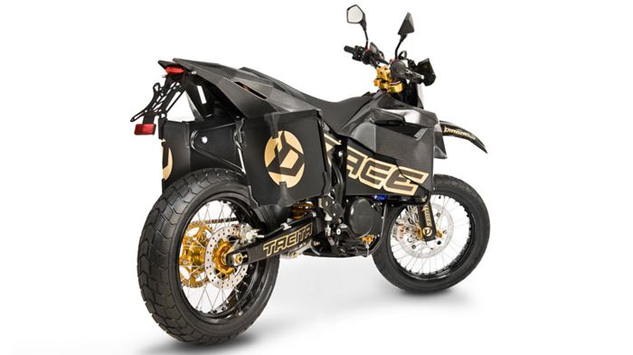 …δηλαδή ότι υπονοεί και ο τίτλος, αγωνιστικό Supermotard, ίδιο σε χαρακτηριστικά με το TR-CROSS αλλά φυσικά με διαφορετικούς 17άρηδες τροχούς και Ohlins TTX μπροστινό (!)