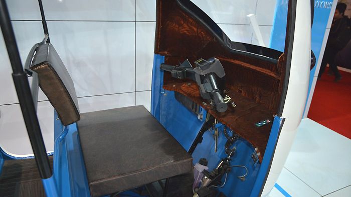 Όσο σύγχρονο φαίνεται εξωτερικά το ηλεκτρικό τρίκυκλο της ιαπωνικής εταιρίας άλλο τόσο αναχρονιστικό είναι εσωτερικά με την προτεραιότητα να έχει δοθεί εδώ στη βαριά επαγγελματική χρήση (κυρίως μεταφορά ατόμων). Η καμπίνα του είναι σπαρτιάτικη τόσο για τους επιβαίνοντες όσο και τον οδηγό με τις κύριες πληροφορίες και ενδείξεις για την κατάσταση της μπαταρίας και την ταχύτητα του οχήματος να έχουν συγκεντρωθεί στο τιμόνι με τους «παλαιάς κοπής» διακόπτες.