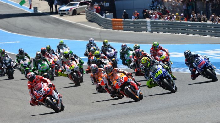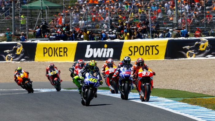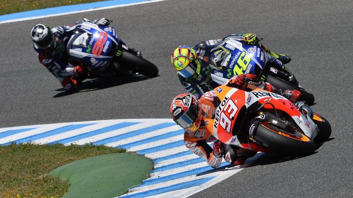 Επειδή στα δοκιμαστικά είχαμε δυνατή μάχη για πρώτη φορά φέτος, μεταξύ Marquez και Lorenzo, όλοι περιμέναμε να δούμε ανάλογο θέαμα στον αγώνα. Η πίστα της Jerez ήταν γεμάτη, με 115.000 θερμόαιμους Ισπανούς οπαδούς. Στην εκκίνηση, ο Lorenzo ξεκίνησε άσχημα, ενώ την έκπληξη έκανε ο… Dovizioso, που τέθηκε επικεφαλής μόνο για λίγο, αφού αμέσως μετά άνοιξε την τροχιά του για να τον περάσουν Marquez και Rossi.