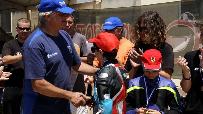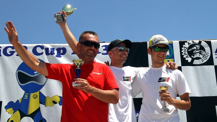Κατηγορία MiniGP Στη μικρή κατηγορία, στον αγώνα προηγήθηκε ο Αλέξανδρος Χαβέλας, με το Νίκο Καρακώστα να τον έχει από κοντά, για να τον περάσει αργότερα, και να ηγηθεί εκείνος της κούρσας για την καρό σημαία. Το μεγάλο φαβορί εδώ, ο γνωστός από τους αγώνες που έχει δώσει στο εξωτερικό, Νότης Παπαπαύλου, αφού πέρασε τον Χαβέλα (που είχε πτώση μετά) άρχισε να ανεβαίνει και να πιέζει τον Καρακώστα. Ο τελευταίος έκανε το λάθος και είχε κι εκείνος μια μεν ανώδυνη πτώση, που στάθηκε αρκετή όμως για να δώσει την ευκαιρία στον Παπαπαύλου να πάρει μια άνετη νίκη. Δεύτερος, 14.40 δευτερόλεπτα πιο πίσω, ήταν ο Ηλίας Μπαξίσογλου, και το βάθρο συμπληρώθηκε από τον Μαρίνο Λομποτέση, που τερμάτισε 47.87 δευτερόλεπτα σχεδόν πίσω από τον πρώτο Παπαπαύλου. Ο Καραμάνης ήταν τέταρτος, και πέμπτος ήρθε ο Παπανικολάου.