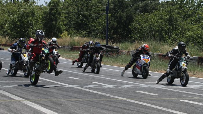 Κατηγορία MiniGP S Στην κατηγορία MiniGP S είδαμε αρκετές συμμετοχές από αναβάτες που τρέχουν και στο Πανελλήνιο Πρωτάθλημα Ταχύτητας. Στην εκκίνηση έφυγε μπροστά ο Νίκος Λιόλιος κάνοντας την έκπληξη. Δύο γύρους αργότερα όμως, ο Σάκης Συνιώρης έκανε την κίνηση του, περνώντας με τη σειρά του πρώτος. Παρόλο που ο Λιόλιος δεν έχασε την επαφή με τον πρώτο, δεν είχαμε άλλες εναλλαγές στην κορυφή, με τον Συνιώρη να καθορίζει το ρυθμό του αγώνα, και να παίρνει την καρό σημαία. Στο γύρο μάλιστα του θριάμβου έδειξε το κέφι και το ταλέντο του στη σούζα, χαρίζοντας μας έξτρα θέαμα. Τρίτος ήταν ο Γιώργος Παπασταύρου, ενώ αξίζει να σημειώσουμε πως οι πρώτοι τρεις τερμάτισαν με διαφορά μολις ενός δευτερολέπτου! Τέταρτος ήταν ο Πίππος, και την πεντάδα έκλεισε ο Φασουλάκης.