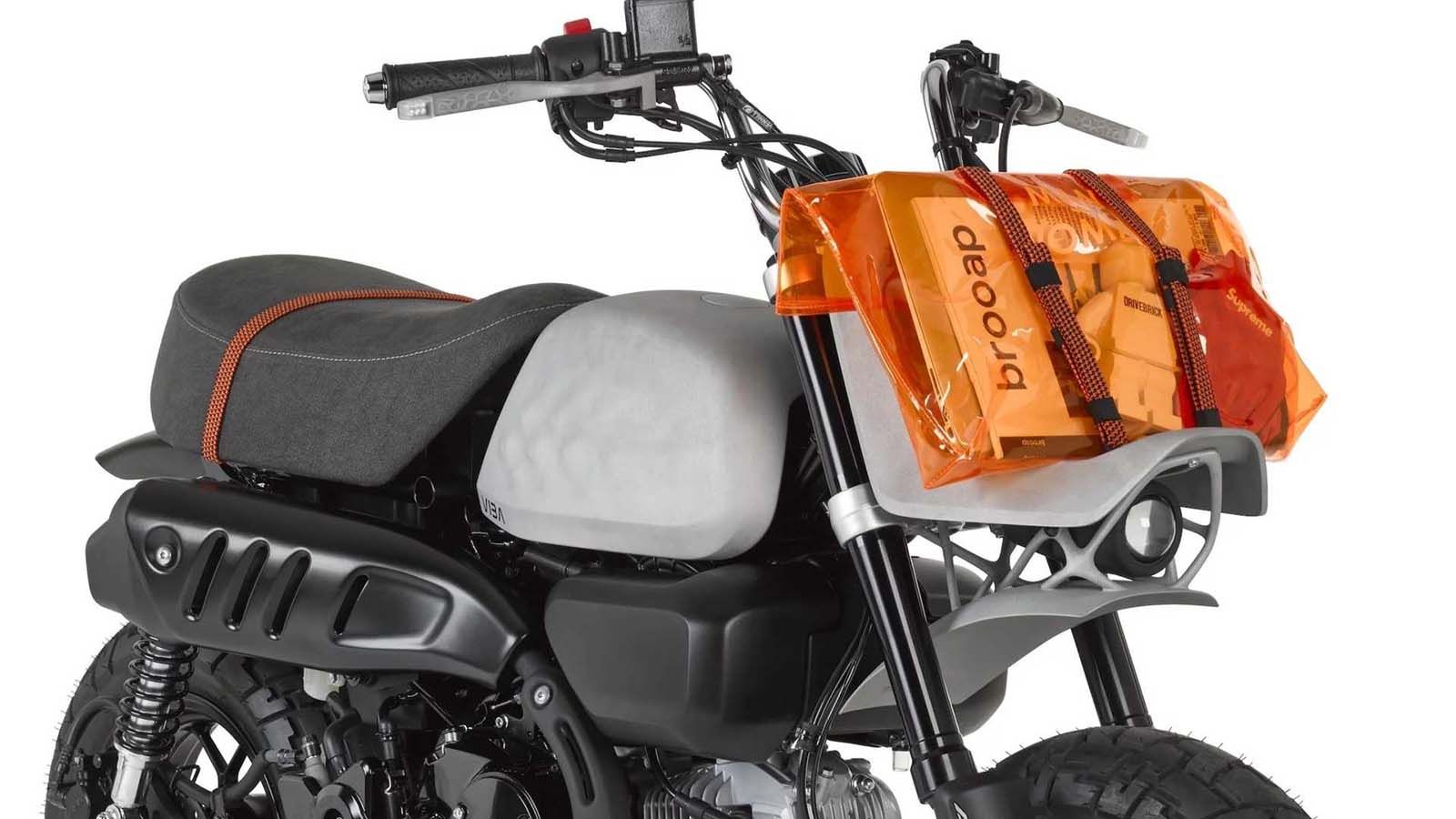 Το σετ περιλαμβάνει ένα τεπόζιτο, μανέτες φρένου και συμπλέκτη, ειδική κατασκευή μάσκας που ντουμπλάρει και ως «σχάρα» για μεταφορά αντικειμένων –της οποίας τμήμα είναι και το εμπρός φτερό.