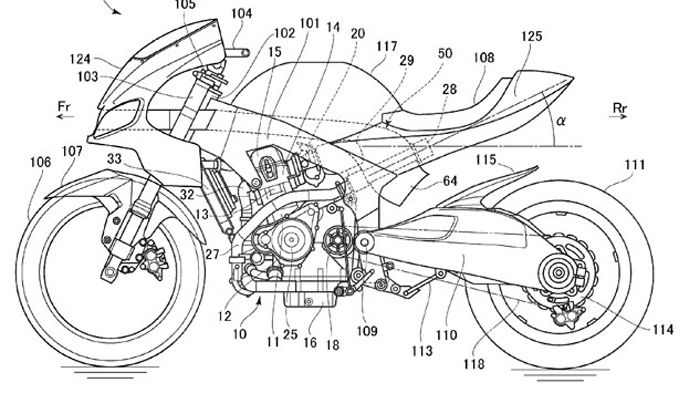 Στο σχέδιο της πατέντας που βγήκε στη δημοσιότητα τον περασμένο Μάρτιο, βλέπουμε μια μοτοσυκλέτα που θυμίζει πολύ Recursion.