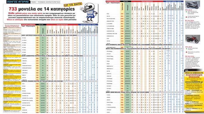 Και όπως πάντα, ΜΟΝΟ στο Moto Τρίτη, ο πληρέστερος ΟΔΗΓΟΣ για αγορά καινούργιου ή μεταχειρισμένου δικύκλου (τιμές ανά κατηγορία, τεχνικά χαρακτηριστικά, προσφορές).