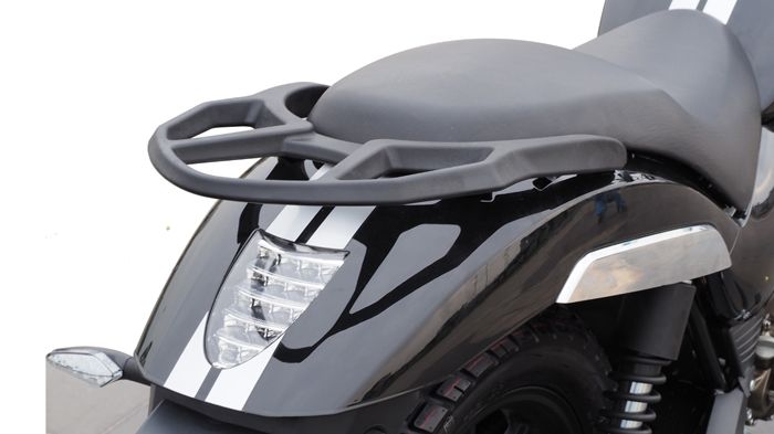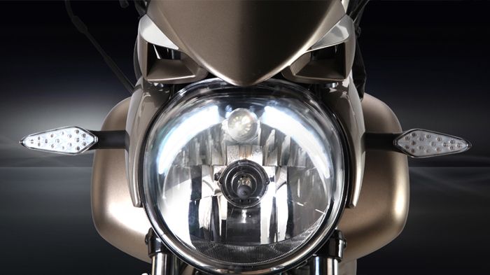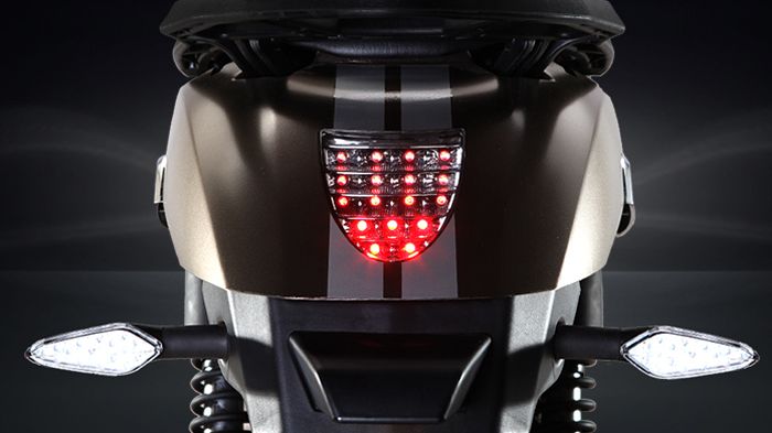 Ο μικρός και οικονομικός κινητήρας του είναι αερόψυκτος διβάλβιδος και αποδίδει 11 ίππους, ενώ για την ακινητοποίηση της ελαφριάς μοτοσικλέτας (120 στεγνά κιλά) φροντίζει ένα δισκόφρενο με δαγκάνα δύο εμβόλων και ένα μεγάλο σε μέγεθος ταμπούρο στον πίσω τροχό. Μπροστά βλέπουμε ένα συμβατικό πιρούνι με διαδρομή 121 χλστ., ενώ πίσω τα αμορτισέρ φέρουν προφόρτιση ελατηρίου σε πέντε θέσεις.