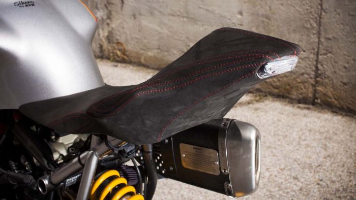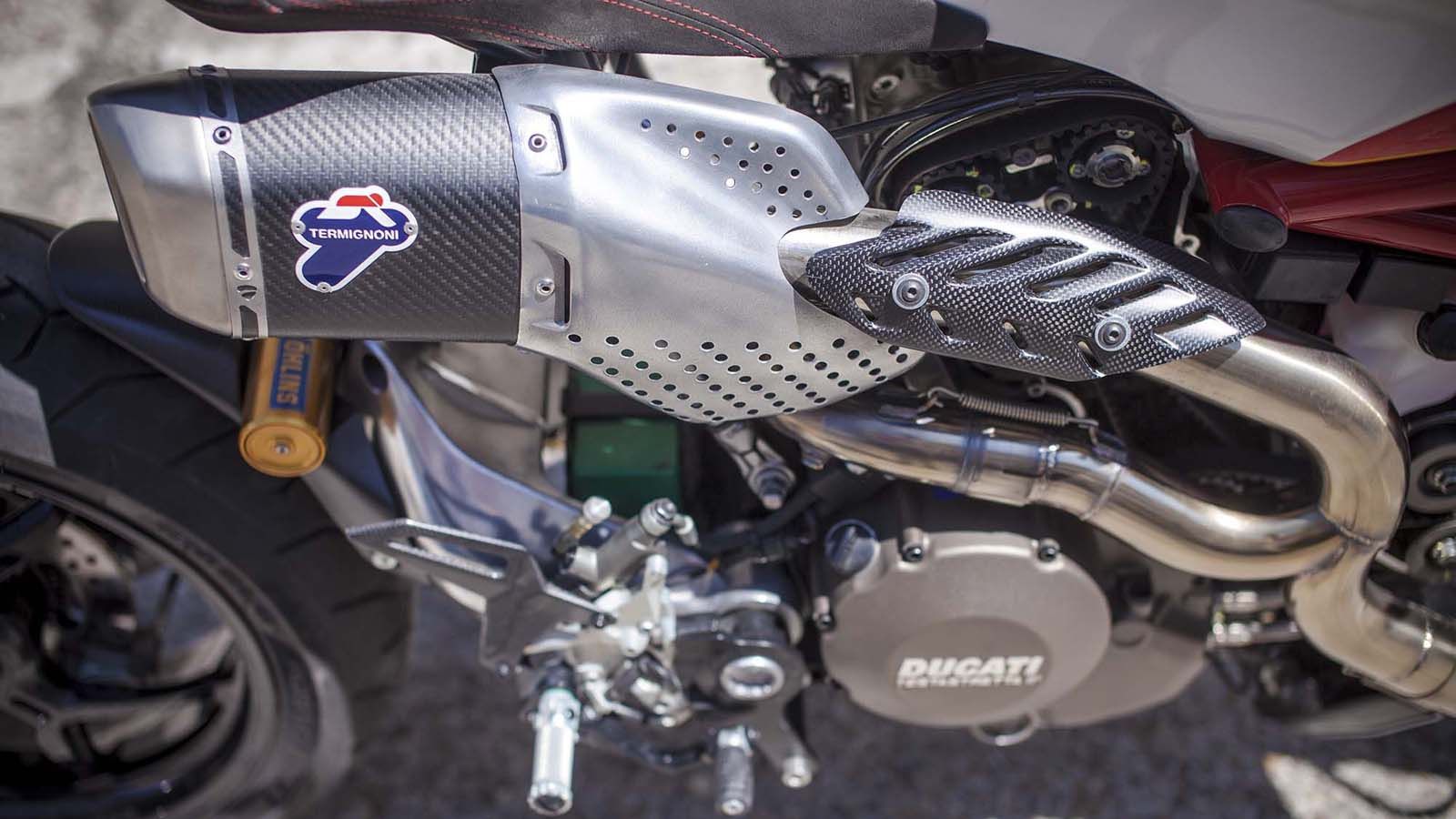 Οι αναρτήσεις είναι από την Ohlins εμπρός και πίσω, ενώ ο Pepo επέλεξε μια μικρή, μονή φωτιστική μονάδα για να εξοπλίσει το Monster 1200 στο εμπρός του μέρος. Η εξάτμιση της Termignoni, που είναι χειροποίητη και φτάνει πολύ ψηλά, κοντά στη σέλα, κόβει την ανάσα!
