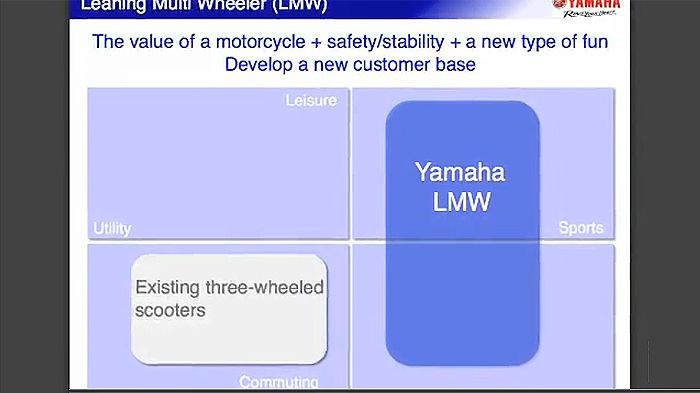 Το νέο ιαπωνικό τρίκυκλο, θα είναι χρηστικό, ασφαλές αλλά και διασκεδαστικό-όπως φαίνεται και από τα slides-θα κάνει την εμφάνισή του το Νοέμβριο στην Έκθεση του Τόκιο και λίγο αργότερα φυσικά στην EICMA. Από τα slides της παρουσίασης εντύπωση φυσικά μας έκανε και το τελευταίο που δείχνει έναν ολοκαίνουριο κινητήρα ο οποίος μάλλον βρίσκεται σε προχωρημένο στάδιο εξέλιξης και θα κινεί το νέο μοντέλο της Yamaha. Δεν αποκλείεται φυσικά να τον δούμε και σε άλλα μελλοντικά μοντέλα της ιαπωνικής εταιρίας. Αυτό που δεν φαίνεται καθόλου και έχει κρυφτεί επιμελώς είναι το σύστημα της μπροστινής ανάρτησης το οποίο λογικά και θα παραμείνει κρυμμένο μέχρι και την επίσημη παρουσίαση του νέου τρίκυκλου.