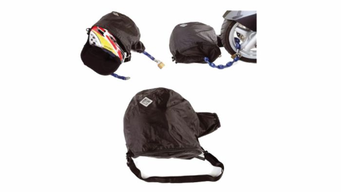 Αδιάβροχη τσάντα-θήκη κράνους της Τucano Urbano, κατασκευασμένη από πολυαμίδιο.