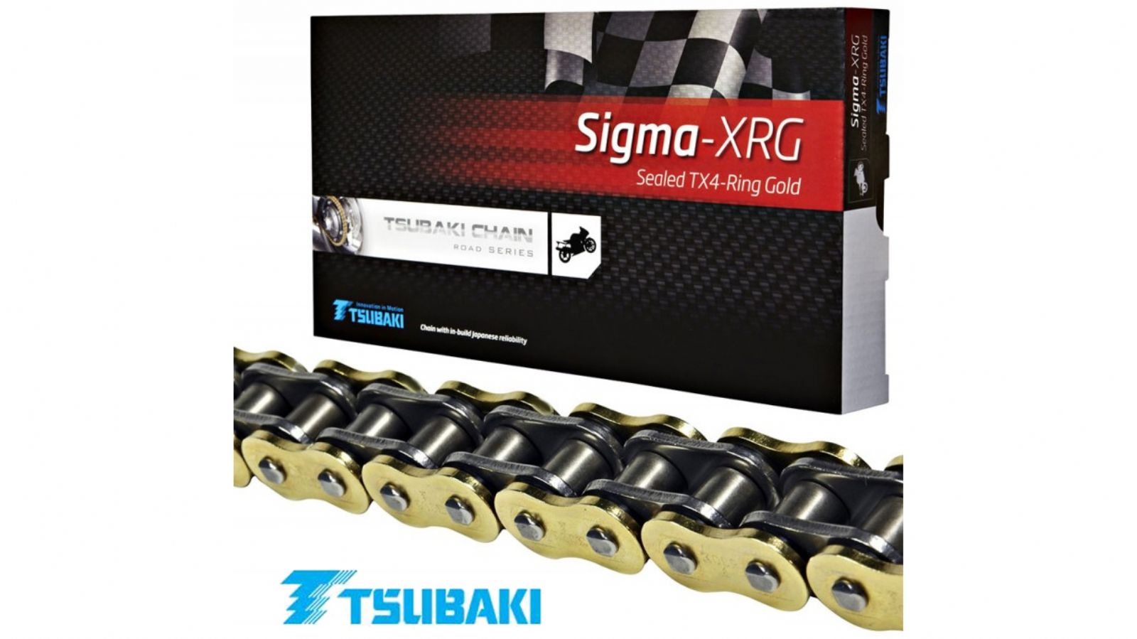 Η νούμερο 1 αλυσίδα της Tsubaki έχει χρυσές εξωτερικές πλάκες ζεύξης και δακτυλίους X-ring και είναι επομένως ιδανική για την τρέχουσα γενιά μοτοσυκλετών με υψηλή ισχύ.