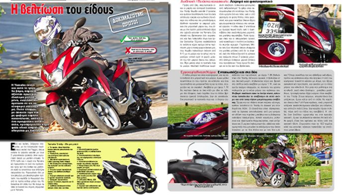 Στο νέο τεύχος του Moto Τρίτη που κυκλοφορεί ήδη στα περίπτερα δοκιμάζουμε πρώτοι τοYamaha Tricity. Το πρώτο τρίκυκλο της ιαπωνικής εταιρίας με την ιδιαίτερα ελκυστική τιμή και τις compact διαστάσεις έρχεται να προσθέσει έξτρα ασφάλεια στο αστικό περιβάλλον με τη συμβολή του επιπλέον εμπρός τροχού.