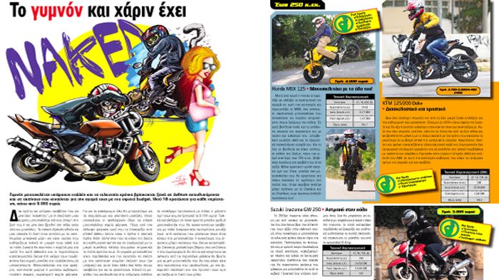 Επιπλέον, όλοι εσείς που έχετε μια ιδιαίτερη έφεση στο γυμνό (για μοτοσικλέτες μιλάμε!) θα βρείτε πολύ ενδιαφέρον το αγοραστικό στο οποίο παρουσιάζουμε 18 naked μοτοσικλέτες της αγοράς που αξίζουν την προσοχή σας με τιμή που δεν ξεπερνά τα 9.000 ευρώ.