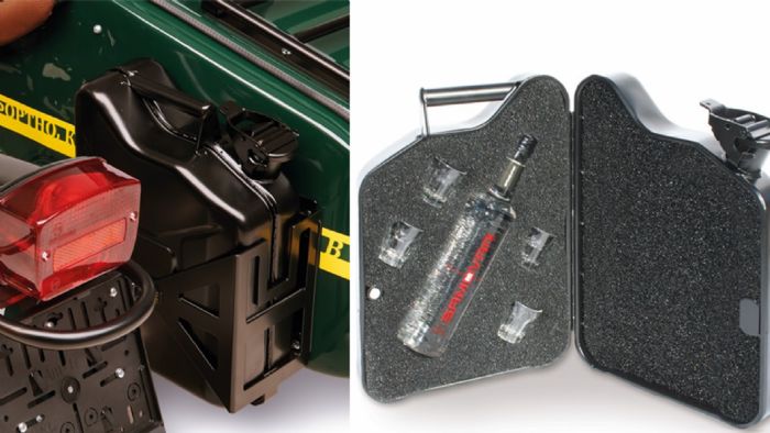 Ακόμη, η δημιουργία περιλαμβάνει δύο πλευρικές βαλίτσες στο αμαξίδιο, ενώ η Ural CT μοτοσυκλέτα στην οποία βασίζεται έχει έναν ισχυρότερο κινητήρα και custom πιρούνι. Αλλά η αποκορύφωση έρχεται στο ότι η μοτοσυκλέτα περιλαμβάνει… και ένα μπουκάλι βότκα Samovar αλλά και 4 ποτήρια για σφηνάκι, μέσα σε μια κατασκευή που θυμίζει κάνιστρο βενζίνης! Τι πιο τρελό, τι πιο… Ρώσικο! Δεν ξέρουμε βέβαια κατά πόσο αυτή η προσθήκη είναι ασφαλής…