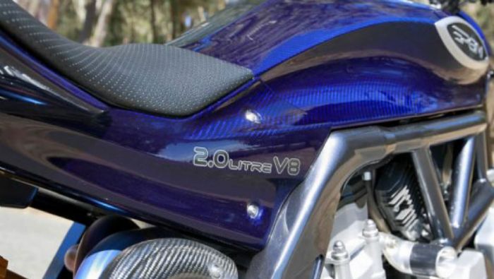 Η V8 αποτελεί δημιουργία του Pat Maloney, πρώην μηχανικού της ομάδας της Sauber στην F1 και κατασκεύασε τον κινητήρα των 2.000 κυβικών ενώνοντας δυο μπλοκ από Yamaha R1 και δημιουργώντας περιεχόμενη γωνία 90 μοιρών. Η απόδοσή του είναι περίπου 334 άλογα στις 12.800 σ.α.λ. και 21,8 κιλά ροπής στις 9.500 σ.α.λ. Από τις μεγαλύτερες προκλήσεις που αντιμετώπισε ο Maloney ήταν η κατασκευή του κιβωτίου και του συμπλέκτη. Όλες οι απαραίτητες πληροφορίες προβάλλονται σε μια έγχρωμη ψηφιακή οθόνη της Motec.