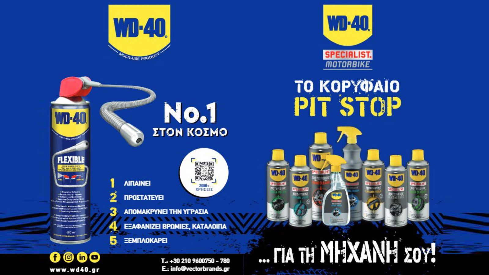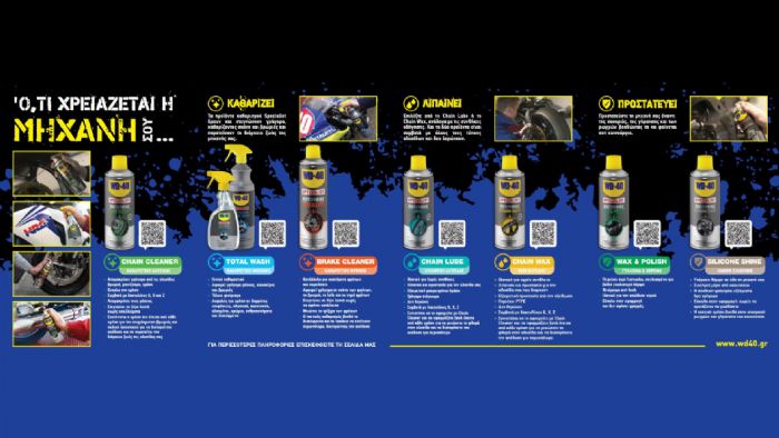 Η σειρά WD-40 Specialist Motorbike έχει σχεδιαστεί ειδικά για να παρέχει τις καλύτερες λύσεις συντήρησης για τη μοτοσυκλέτα σου. Περιλαμβάνει προϊόντα καθαρισμού, λίπανσης και προστασίας κατάλληλα για κάθε μοτοσυκλέτα και κάθε χρήση. Είτε είσαι λάτρης της ασφάλτου, είτε σου αρέσει να εξερευνάς τα βουνά, η WD-40 θα σε βοηθήσει να διατηρείς τη μοτοσυκλέτα σου σε άριστη κατάσταση.
