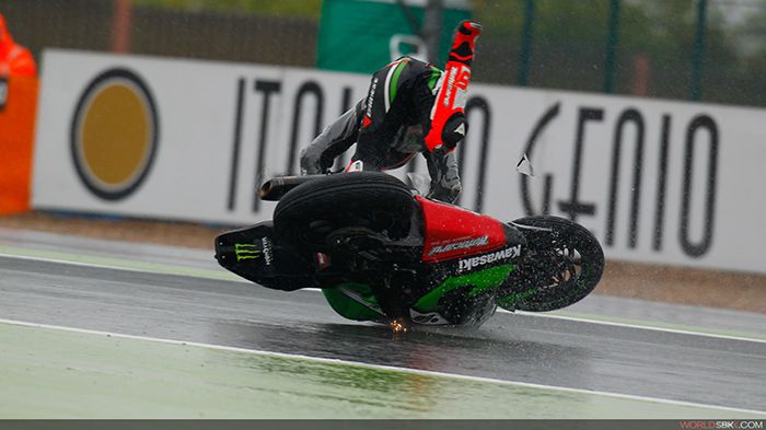 Η βροχή με τα τερτίπια της πήγε να κάνει άνω-κάτω τον γαλλικό αγώνα του WSBK στην πίστα του Magny-Cours. Σε απολύτως υγρές συνθήκες η διαδικασία της Superpole το Σάββατο είχε πολλά απρόοπτα, με κορυφαίο αυτό της πτώσης του Alex Lowes της Suzuki. Η πτώση του Βρετανού οδήγησε κόκκινη σημαία και όταν δόθηκε ξανά το πράσινο φως για το πέρας της διαδικασίας επέμεναν μόλις 2 λεπτά και 46 δευτερόλεπτα. Αυτό σήμαινε πως όποιος ήθελε να διεκδικήσει κάτι είχε έναν γύρο να το δείξει. Νικητής από τη διαδικασία αυτή βγήκε ο Leon Haslam (Aprilia), με τον Jonathan Rea (Kawasaki) να γράφει χρόνο μόλις 4 χιλιοστά του δευτερολέπτου πιο αργό.