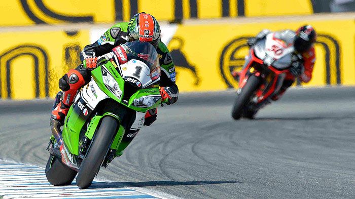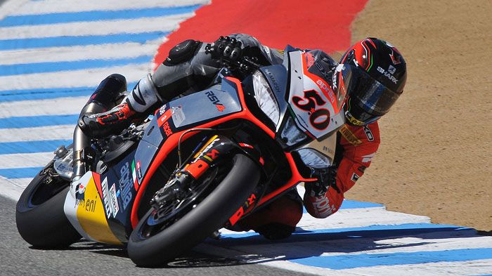 Ο Marco Melandri της Aprilia Racing τερμάτισε στην 1η θέση του 1ου σκέλους στον αμερικάνικο γύρο των SBK ενώ ο Tom Sykes πήρε το 2ο επεισοδιακό σκέλος, που σημαδεύτηκε από δύο διακοπές!
