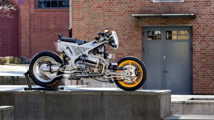 Το μοντέλο βασίστηκε στον κινητήρα ενός BMW R1150 GS και, ουσιαστικά, το μοτέρ, ο άξονας μετάδοσης και οι τροχοί είναι τα μόνα κομμάτια παραγωγής που βρίσκονται στην μοτοσυκλέτα. Το «πλαίσιο» που αποτελεί και  την μορφή της μοτοσυκλέτας είναι φτιαγμένο από ατσάλι μετά από…άπειρες ώρες σχεδίασης σε περιβάλλον CAD, Μπροστά από την σέλα του αναβάτη βρίσκεται το ρεζερβουάρ, σχεδιασμένο ειδικά για αυτή την κατασκευή, το οποίο φιλοξενεί μια ειδική νεύρωση στο εσωτερικό του και παίζει και τον ρόλο φέροντος τμήματος!