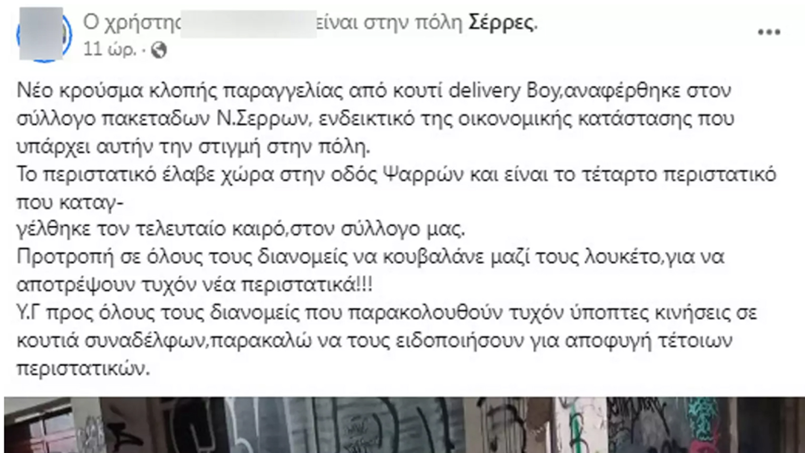 «Νέο κρούσμα κλοπής παραγγελίας από κουτί delivery Boy, αναφέρθηκε στον σύλλογο πακεταδων Νομού Σερρων, ενδεικτικό της οικονομικής κατάστασης που υπάρχει αυτήν την στιγμή στην πόλη.