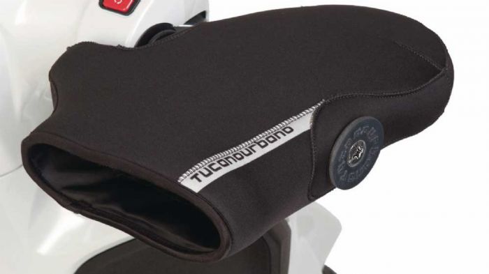 Διαθέτουν νέο σύστηµα τοποθέτησης στο τιµόνι µέσω της βίδας των αντίβαρων ή του παρεχόµενου δίσκου που επιτρέπει την ελεύθερη επιστροφή του γκαζιού, υφασµάτινη επένδυση από γούνινο φούτερ (επαφή µε το πίσω µέρος του χεριού), άκαµπτο άνοιγµα µε ελαστική αδιάβροχη προσαρµογή, ανακλαστικό µοτίβο, ενώ το εσωτερικό άκαµπτο προφίλ διασφαλίζει σταθερότητα σε υψηλές ταχύτητες.