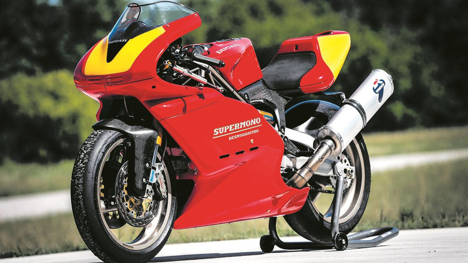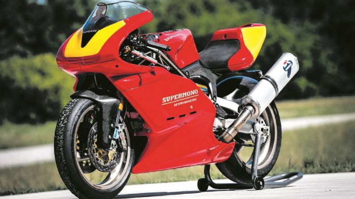 Έναντι ενός επίσης τεράστιου χρηματικού ποσού πωλήθηκε στην ίδια δημοπρασία, και μία από τις 65 Ducati Supermono που υπάρχουν παγκοσμίως. Η αγωνιστική μοτοσυκλέτα που έχει λάβει fetish status πωλήθηκε έναντι 76.308 λιρών ή 88.200 ευρώ, αντίστοιχα…