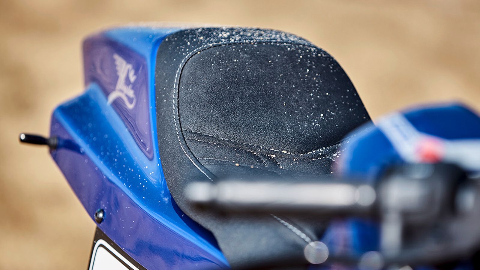 Ο Dirk αποφάσισε να «κοντύνει» το εμπρός πιρούνι κατά 40 χιλιοστά και πείραξε λίγο την πίσω ανάρτηση, για λίγο πιο επίπεδη στάση στο πίσω μέρος. Παράλληλα, τοποθέτησε ένα νέο τελικό που θυμίζει ρετρό μοτοσυκλέτες, αλλά και ελαστικά για χρήση και εκτός δρόμου. Κατά τα άλλα, ο Dirk δεν πείραξε τίποτα ακόμα, καθώς όπως δήλωσε, σκόπευε να κρατήσει όσο περισσότερα εργοστασιακά κομμάτια γίνεται. Μην ξεχνάμε ότι έβαλε και...πλαφόν στο κόστος της μετατροπής, άλλωστε.