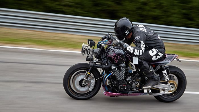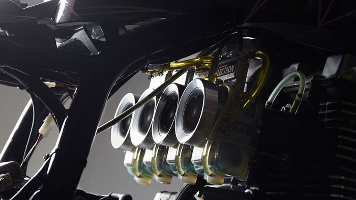 Μια τετράδα κραμπυρατέρ Lectron 42 εξελίχθηκαν ειδικά για το συγκεκριμένο XJR1300 με μια επίσης ειδική ηλεκτρονική της Dynatek για τη μπαγκέτα του μαέστρου. Η ισχύς του έχει αισίως φτάσει στους 148 ίππους, οι οποίοι με αυτό το βάρος αλλάζουν εντελώς τους κανόνες του παιχνιδιού. Προσθέστε τώρα και ανθρακονημάτινους τροχούς της Dymag, τιμονόπλακες και εξαπίστονες δαγκάνες της ISR, ψαλίδι της Over και μια ελεύθερη εξάτμιση τιτανίου της ιαπωνικής Asahina Racing για να αντιληφθείτε πως αυτό το XJR έχει πολλά περισσότερα από απλώς την περίεργη εμφάνιση που σχεδίασε η El Solitario.