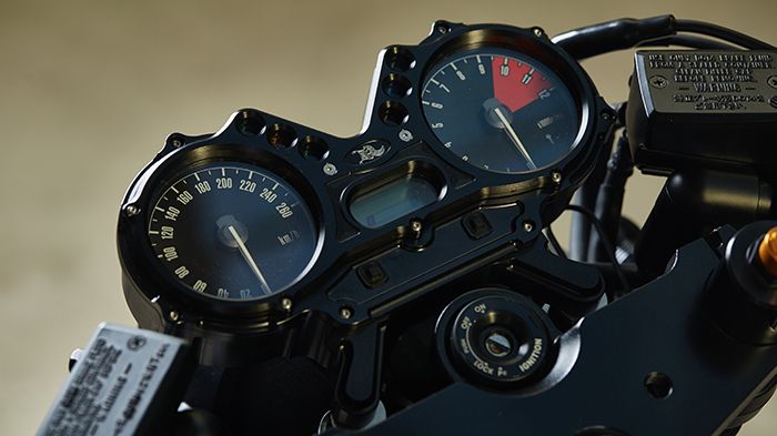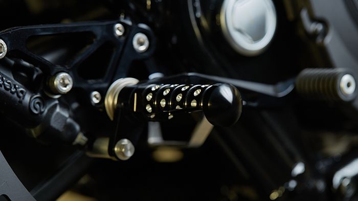Όσον αφορά στις μηχανολογικές κατεργασίες, αυτές ανατέθηκαν σε κάποιον πιο ειδικό. Το εργαστήρι custom κατασκευών από την Ιαπωνία Kens Factory συνεργάστηκε εδώ φτιάχνοντας όλα εκείνα τα εμφανισιακά κομμάτια που δίνουν στο XJR τον απαραίτητο café racer χαρακτήρα των δεκαετιών του 1970 και 80. Ξεχωρίζουμε κομμάτια όπως η αλουμινένια βάση των οργάνων, ενώ η μόνη ουσιαστική διαφορά που εντοπίζουμε στον κινητήρα αφορά στην εξάτμιση. Μιλάμε για ένα σετ από λαιμούς κατασκευασμένους από τιτάνιο που οδηγούν σε δύο ανοξείδωτα τελικά με τον ανάλογο ήχο.