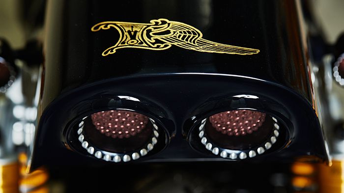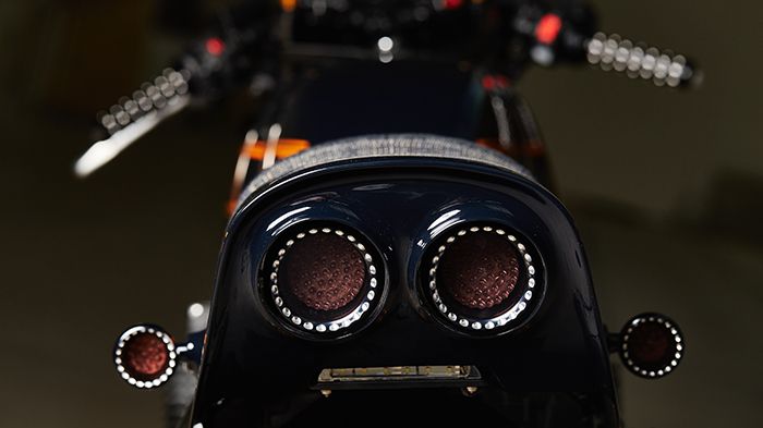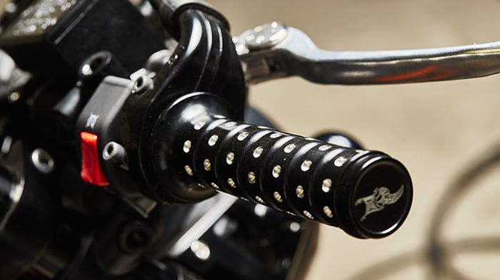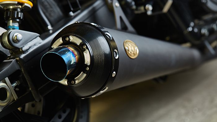 Τα δύο ανοδείξωτα μαύρα τελικά από την Kens Factory είναι η μόνη μηχανολογική βελτίωση στη μοτοσικλέτα.