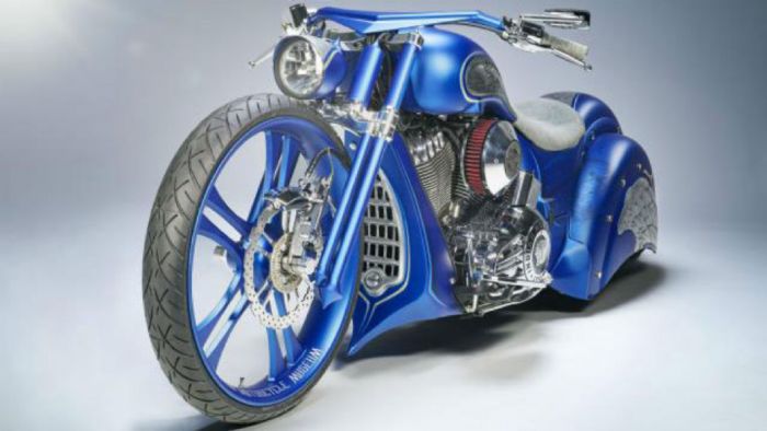 Ο επιβλητικός εμπρός τροχός είναι 26 ιντσών ενώ τόσο εμπρός, όσο και πίσω υπάρχει αερανάρτηση, η οποία ρυθμίζει το ύψος της μοτοσυκλέτας από ένα διακόπτη που βρίσκεται στα αριστερά του πίσω κυλίνδρου. Το ρεζερβουάρ προέρχεται από μια Victory Hammer και οι εξατμίσεις ενώνονται και καταλήγουν χαμηλά στο κέντρο του πίσω φτερού. Φυσικά, τα πάνελ που καλύπτουν τον πίσω τροχό, όπως και τα υπόλοιπα μέρη του «αμαξώματος» της είναι χειροποίητα.