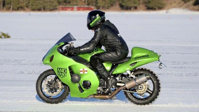 Η προσπάθεια του Eisenberg έγινε με μια ειδικά διασκευασμένη Suzuki Hayabusa με Turbo, η οποία φτάνει αισίως του 350 ίππους περίπου, στην οποία χρησιμοποίησε ελαστικά με καρφιά και ενισχυμένο σκελετό, που επιμελήθηκε ο ίδιος. Ωστόσο, τα ελαστικά αυτά του δημιούργησαν τελικά πρόβλημα, καθώς σε κάθε προσπάθεια για ρεκόρ, καταστράφηκαν! Μάλιστα, λόγω της βίαιης διάλυσής τους, προκάλεσαν και ζημιές στην Hayabusa του Eisenberg, ο οποίος έκανε και μια προσπάθεια με μια άλλη μοτοσυκλέτα για το ρεκόρ.