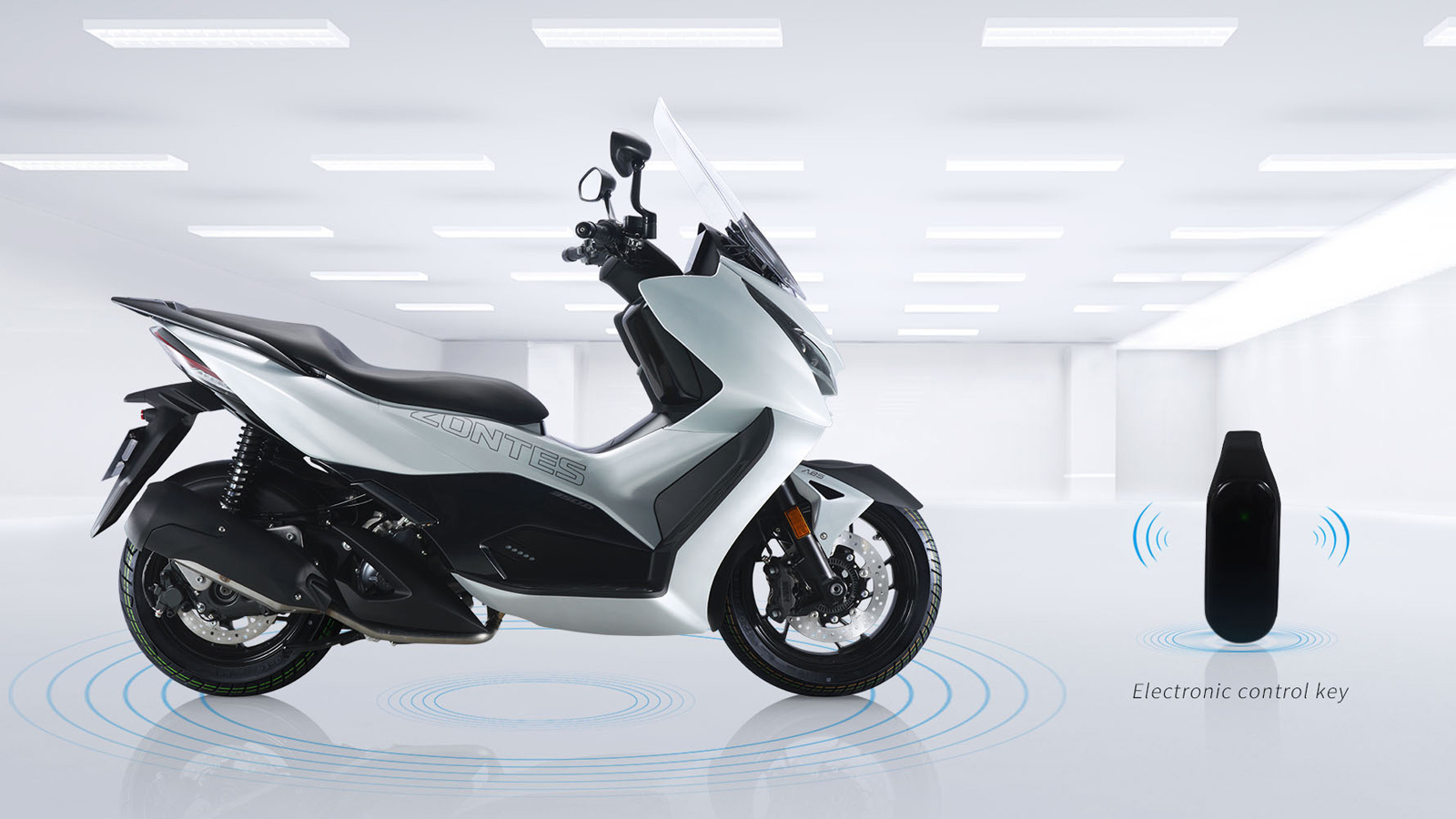 Το 350D διαθέτει σύστημα Keyless 3.0 με πιο εξελιγμένη κρυπτογράφηση που αναγνωρίζει το κλειδί εύκολα και γρήγορα σε απόσταση μικρότερη του 1,5 μέτρου, ενώ αν αυξηθεί η απόσταση κλειδώνει αυτόματα. Το κλειδί έχει διεθνή πιστοποίηση αδιαβροχοποίησης IP67, ενώ πολύ σημαντικό στοιχείο αποτελεί το γεγονός ότι το κλειδί μπορεί να επικοινωνήσει με τον αισθητήρα του scooter ακόμα και αν από αυτό έχει αφαιρεθεί η μπαταρία ώστε να παραμένει κλειδωμένο και ασφαλές. Στον πίνακα οργάνων συναντάμε μία έγχρωμη TFT οθόνη με 4 θεματικά interfaces (Recreation, Race, Street, Simplicity) με αυτόματη προσαρμογή στο φόντο ανάλογα με τις συνθήκες φωτισμού, που διαθέτει δυνατότητα συνδεσιμότητας με Smartphone και πλοηγό. Τα Full LED φωτιστικά σώματα παρέχουν τη βέλτιστη ορατότητα κατά την οδήγηση σε συνθήκες χαμηλού φωτισμού ενώ την πρακτικότητα ενισχύουν τα ντουλαπάκια και η διπλή θύρα φόρτισης USB ισχύος 18W. Κάτω από τη σέλα υπάρχει ικανοποιητικός αποθηκευτικός χώρος που μπορεί να φιλοξενήσει ένα full face κράνος και μικροαντικείμενα του αναβάτη. Η τιμή του νέου Zontes 350D διαμορφώνεται στα 4.795 ευρώ, μία τιμή χαμηλή για τις επιδόσεις και τον πλούσιο εξοπλισμό του και θα είναι διαθέσιμο από τον επόμενο μήνα. Για περισσότερες πληροφορίες επισκεφθείτε την επίσημη ιστοσελίδα της Zontes.