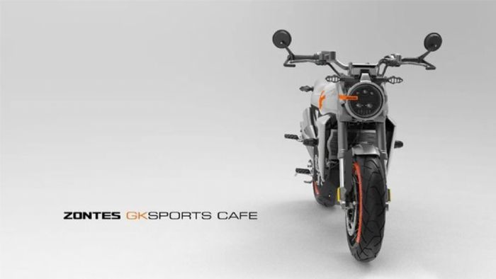 Αυτή η μοτοσυκλέτα που βλέπετε εδώ είναι η νέα 350GK. Σχεδιαστικά, βλέπουμε ότι αν και τα φουτουριστικά στοιχεία που χαρακτηρίζουν τα μοντέλα της Zontes είναι παρόντα, η ρετρό προσέγγιση στην μοτοσυκλέτα είναι επίσης σαφής, με scrambler look και ακτινωτούς τροχούς. Επίσης, το εμπρός φανάρι είναι κυκλικού σχήματος, ενώ οι καθρέπτες bar-end στα άκρα του τιμονιού είναι μια ακόμη, ισχυρή λεπτομέρεια ρετρό.