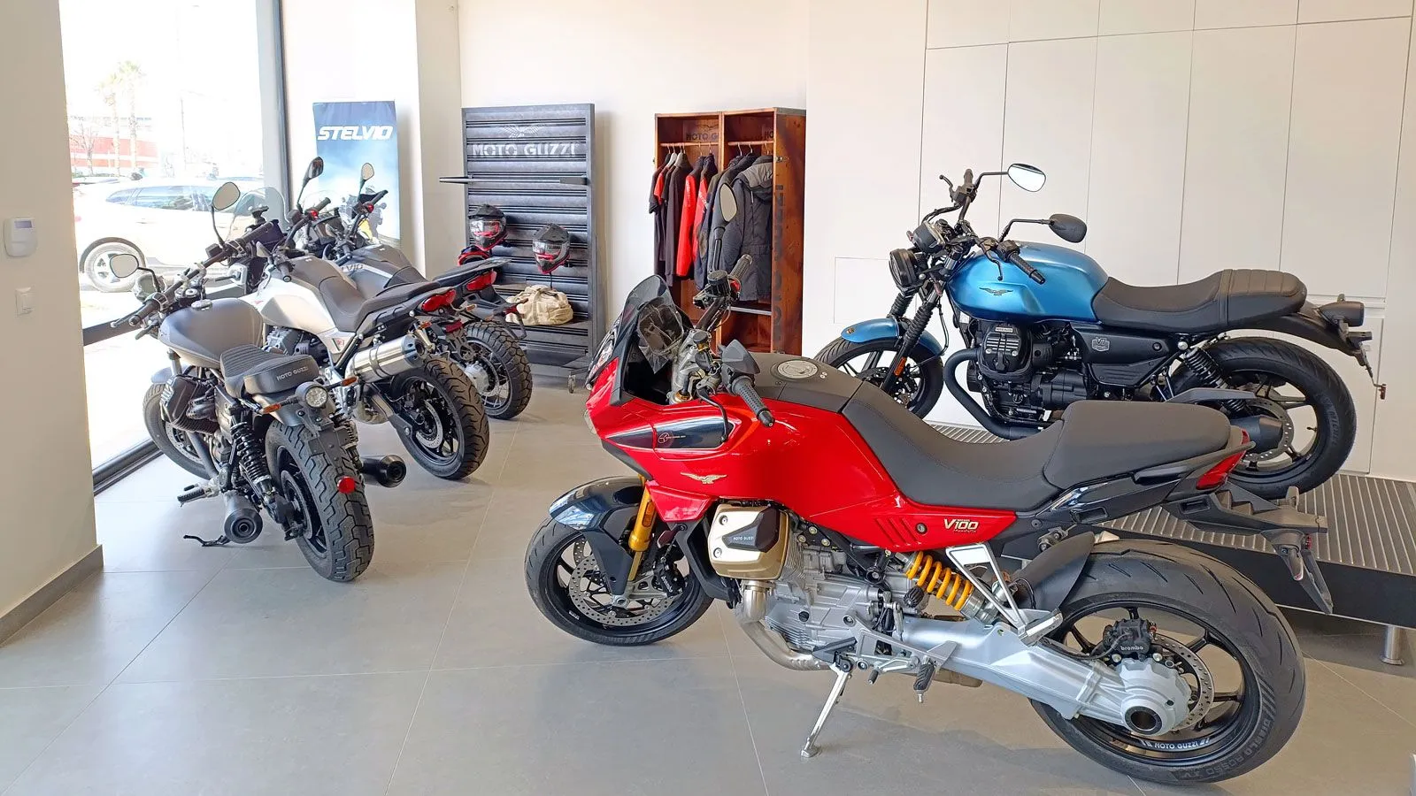 Ιδιαίτερη έμφαση δίνεται και στη γκάμα της Moto Guzzi, με όλα τα σύγχρονα μοντέλα να εκτίθενται στον νέο χώρο. Η ιστορική ιταλική φίρμα, με τον εμβληματικό αετό του Mandello del Lario, εκπροσωπείται πλήρως, αναδεικνύοντας τον διαχρονικό της χαρακτήρα και τη μοναδική της μηχανολογική ταυτότητα.