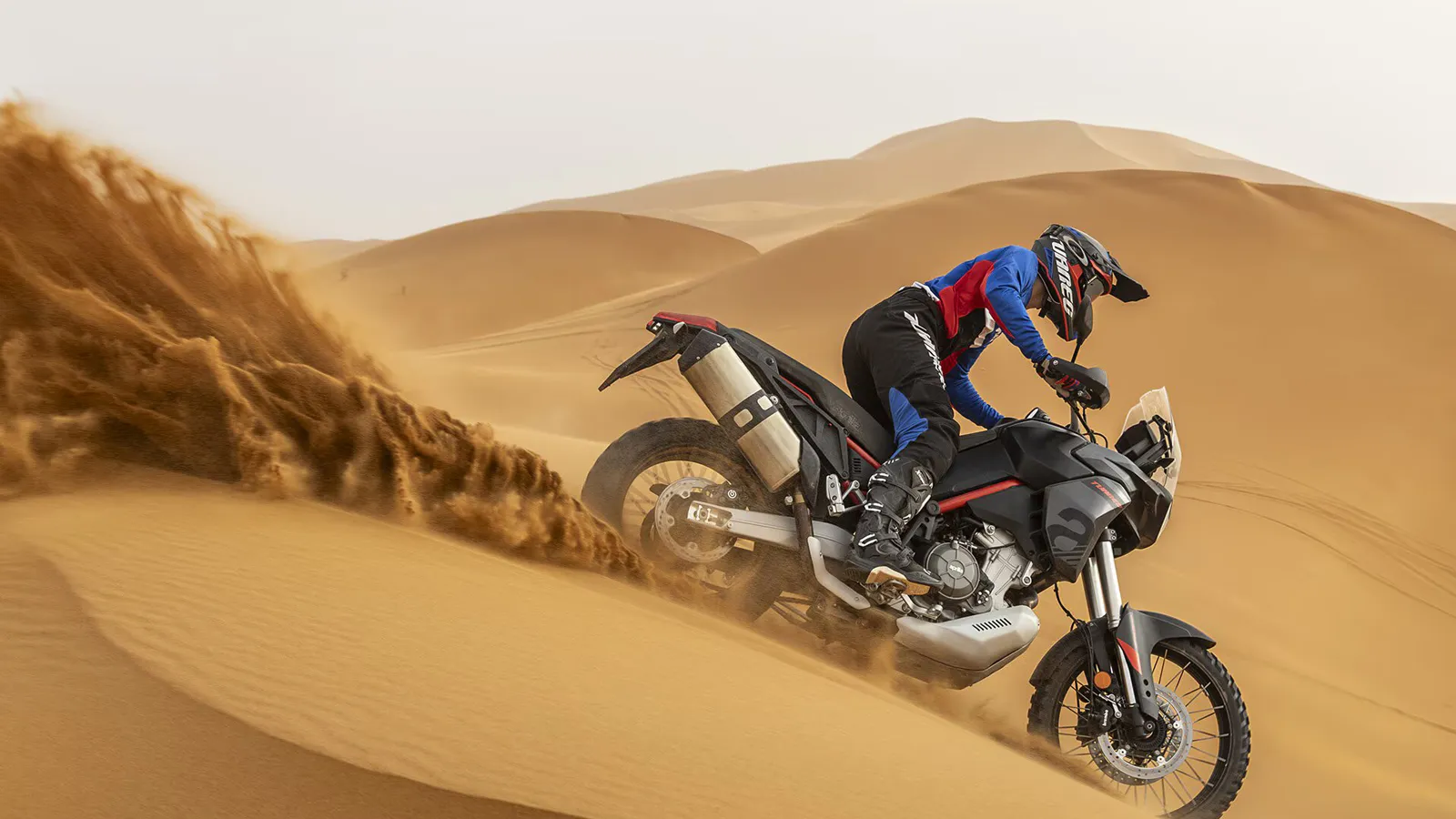 Η εργονομία της Tuareg έχει σχεδιαστεί ώστε να εξυπηρετεί και καθιστή και όρθια οδήγηση. Η σέλα είναι επίπεδη, με άνετο αφρώδες και ύψος 860 mm, επιτρέποντας εύκολη μετακίνηση κατά μήκος της. Ο αναβάτης κάθεται «πάνω» στη μοτοσυκλέτα, με φαρδύ τιμόνι μεταβλητής διατομής που προσφέρει φυσικό έλεγχο, ειδικά σε χωμάτινες διαδρομές όπου απαιτείται αλλαγή στάσης. Στον εξοπλισμό περιλαμβάνονται τα πλήρη ηλεκτρονικά συστήματα APRC, με Traction Control, Cruise Control, χαρτογραφήσεις κινητήρα του Aprilia Engine Management και τέσσερα προγράμματα οδήγησης —Urban, Explore, Off-road και Individual— καλύπτοντας κάθε πιθανό σενάριο χρήσης. Αυτά τα στοιχεία, σε συνδυασμό με το χαμηλό βάρος και τον δυνατό κινητήρα, διαμορφώνουν μια ολοκληρωμένη adventure πρόταση με σοβαρό προσανατολισμό στην πραγματική χρήση.