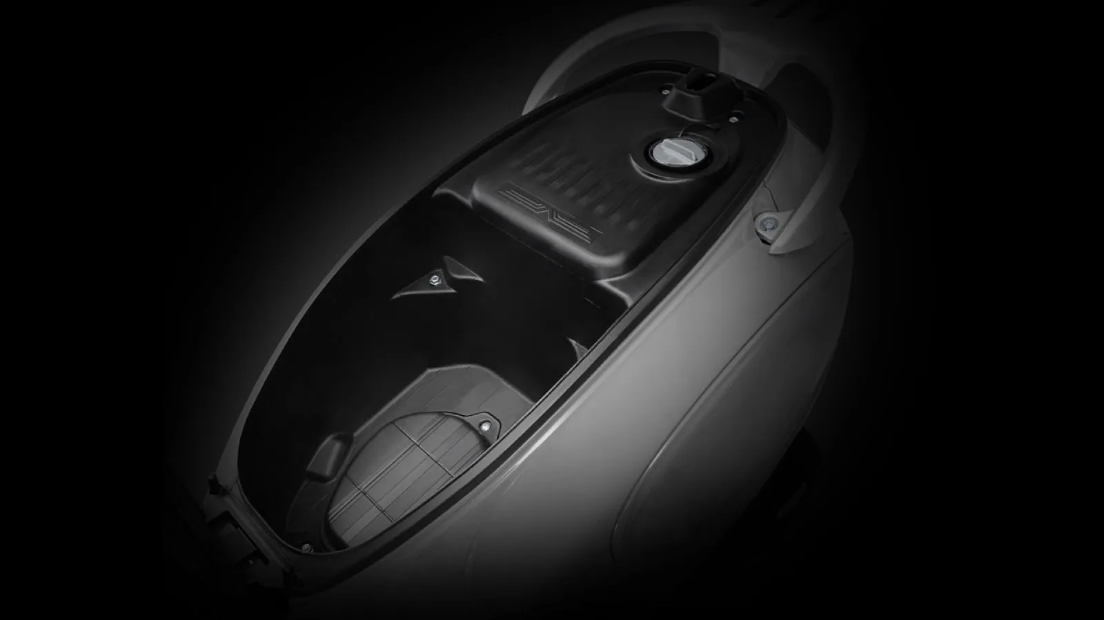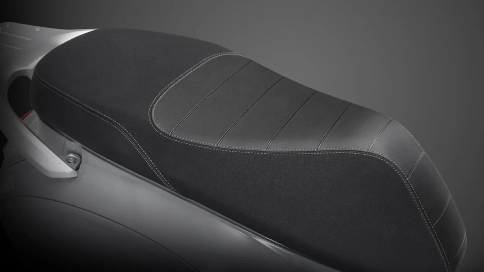 Ο χώρος κάτω από τη σέλα μπορεί να φιλοξενήσει ένα full-face κράνος, καλύπτοντας βασικές ανάγκες αποθήκευσης. Παράλληλα, η θύρα USB, οι ανοιχτές θήκες στην ποδιά και ο γάντζος χειραποσκευών συμπληρώνουν τον εξοπλισμό άνεσης, καθιστώντας το scooter κατάλληλο για καθημερινή αστική χρήση.