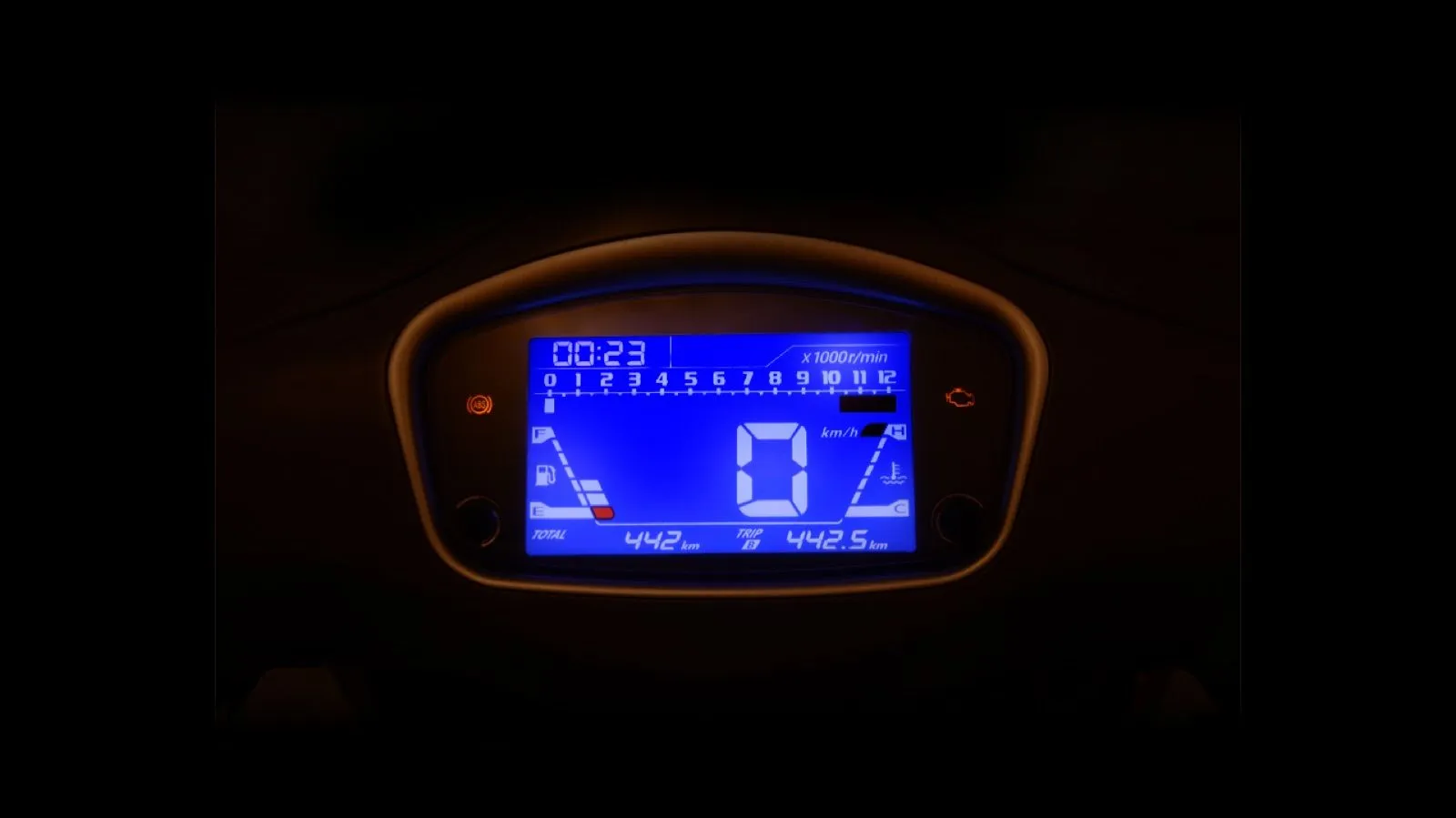 Η οθόνη παρέχει πλήρη πληροφόρηση, συμπεριλαμβάνοντας δύο μερικούς χιλιομετρητές, στροφόμετρο, ένδειξη στάθμης καυσίμου και θερμοκρασία ψυκτικού υγρού. Το συνολικό αποτέλεσμα είναι ισορροπημένο, χωρίς υπερβολές, αλλά με σαφή ταυτότητα.