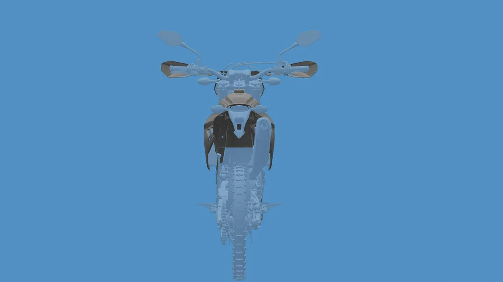 Ιδιαίτερο ενδιαφέρον παρουσιάζει και η νέα εξάτμιση, με μακρύτερο λαιμό, ενσωματωμένο καταλύτη δίπλα στην κυλινδροκεφαλή και αισθητήρα O2, στοιχεία που απουσιάζουν από τις καθαρόαιμες off-road εκδόσεις. Παράλληλα, προστέθηκαν μικρές αλλά ουσιαστικές λεπτομέρειες, όπως προστατευτικό φτέρνας, καλύμματα για γρανάζι και αλυσίδα, καθώς και μικρό πίνακας οργάνων με κλειδί μίζας, κρυμμένα πίσω από το εμπρός κάλυμμα.