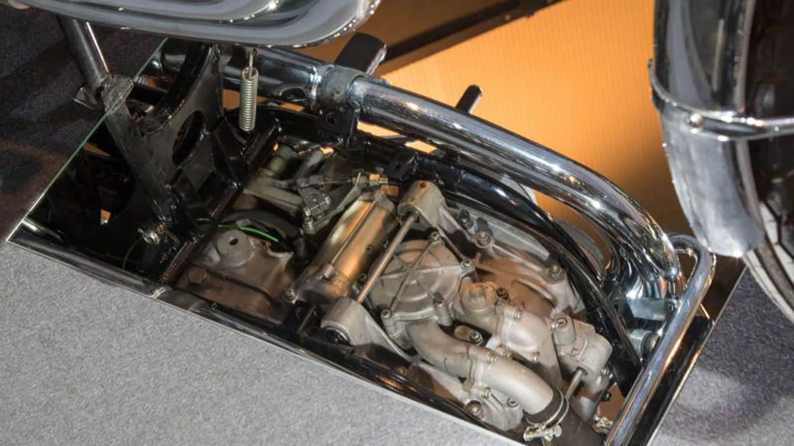 Η αρχιτεκτονική του κινητήρα έφερε και πονοκεφάλους. Η τοποθέτηση τεσσάρων καρμπιρατέρ κρίθηκε προβληματική, οπότε επιλέχθηκε λύση με δύο καρμπιρατέρ, το καθένα τροφοδοτώντας ένα ζεύγος κυλίνδρων. Οι εξατμίσεις έβγαιναν πλαϊνά και κατέληγαν σε δύο σιγαστήρες, έναν σε κάθε πλευρά, με διπλές ανεξάρτητες εξόδους – εικόνα που σήμερα θα θεωρούσαμε καθαρά αγωνιστική.