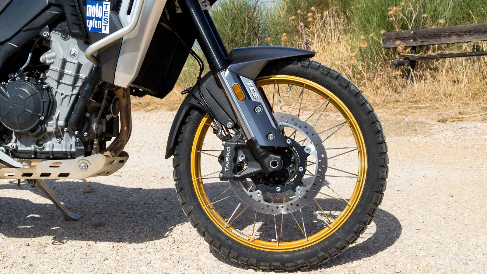 Οι ακτινωτές ζάντες με 21άρη εμπρός και 18άρη πίσω φορούν ελαστικά Pirelli Scorpion Rally STR διαστάσεων 90/90 και 150/70 αντίστοιχα, ενισχύοντας τον dual-sport χαρακτήρα.
