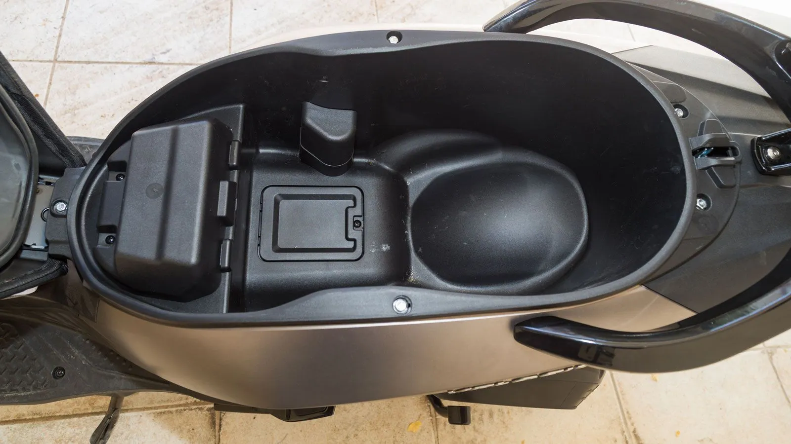 Ο αποθηκευτικός χώρος κάτω από τη σέλα μπορεί να φιλοξενήσει ένα κράνος τύπου full face (ανάλογα το μέγεθος) και μικροαντικείμενα, ενώ η μπαγκαζιέρα SHAD προσθέτει επιπλέον πρακτικότητα για καθημερινά αντικείμενα ή δεύτερο κράνος. Το keyless σύστημα διευκολύνει τις γρήγορες εκκινήσεις και η θύρα USB επιτρέπει φόρτιση συσκευών εν κινήσει, ενώ στην ποδιά υπάρχει κλειδούμενο ντουλαπάκι για μεγαλύτερη ασφάλεια.