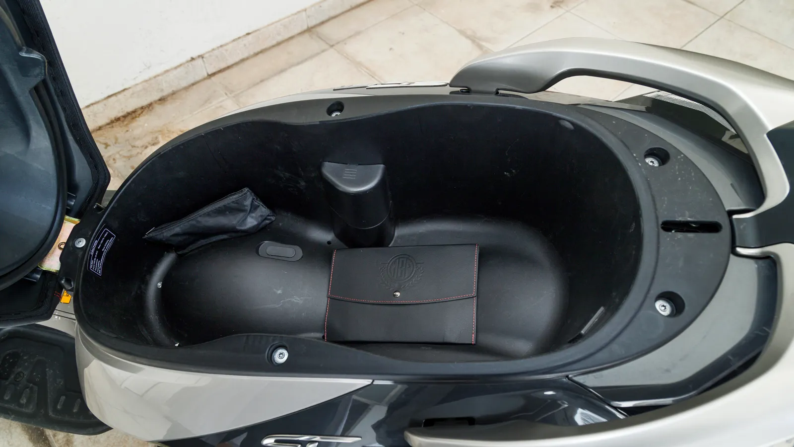 Ο αποθηκευτικός χώρος κάτω από τη σέλα φτάνει τα 31,5 λίτρα, χωρώντας ένα full face και ένα jet κράνος μαζί με μικροαντικείμενα. Ο LCD πίνακας οργάνων με ψηφιακό κυκλικό στροφόμετρο προσφέρει ευανάγνωστες πληροφορίες και βασικές ρυθμίσεις.