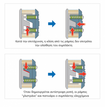 Όταν όμως ο αναβάτης κλείσει το γκάζι ή κατεβάσει ταχύτητες απότομα, δημιουργείται αντίστροφη ροπή από τον πίσω τροχό προς τον κινητήρα. Σε αυτή την περίπτωση, οι ράμπες ενεργοποιούνται: το κέντρο του συμπλέκτη μετακινείται ελαφρώς, ωθώντας την πλάκα πίεσης προς τα έξω. Αυτό μειώνει την πίεση στα δισκάκια, επιτρέποντας στον συμπλέκτη να «πατινάρει» ελεγχόμενα.
